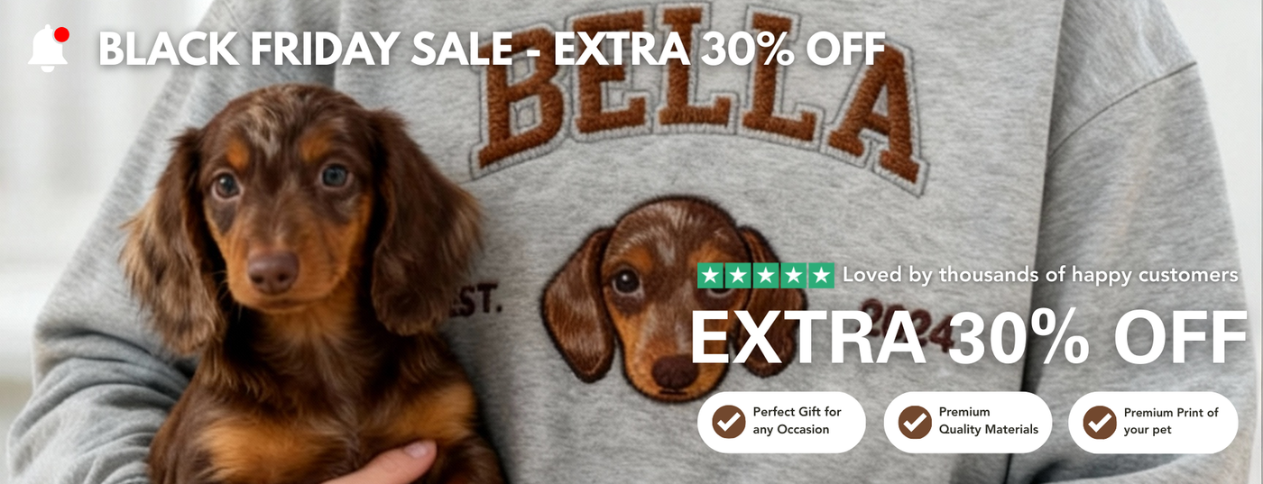 At Pet-Wear, we create premium personalized apparel that celebrates the bond between you and your pet. This Black Friday, we’re opening our doors with our most meaningful offer of the year—crafted with care, made with love, and designed to bring your favorite pet moments to life.